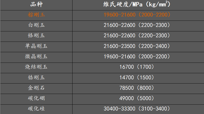 棕剛玉磨料的維氏顯微硬度為2000-2200(kg/mm2),